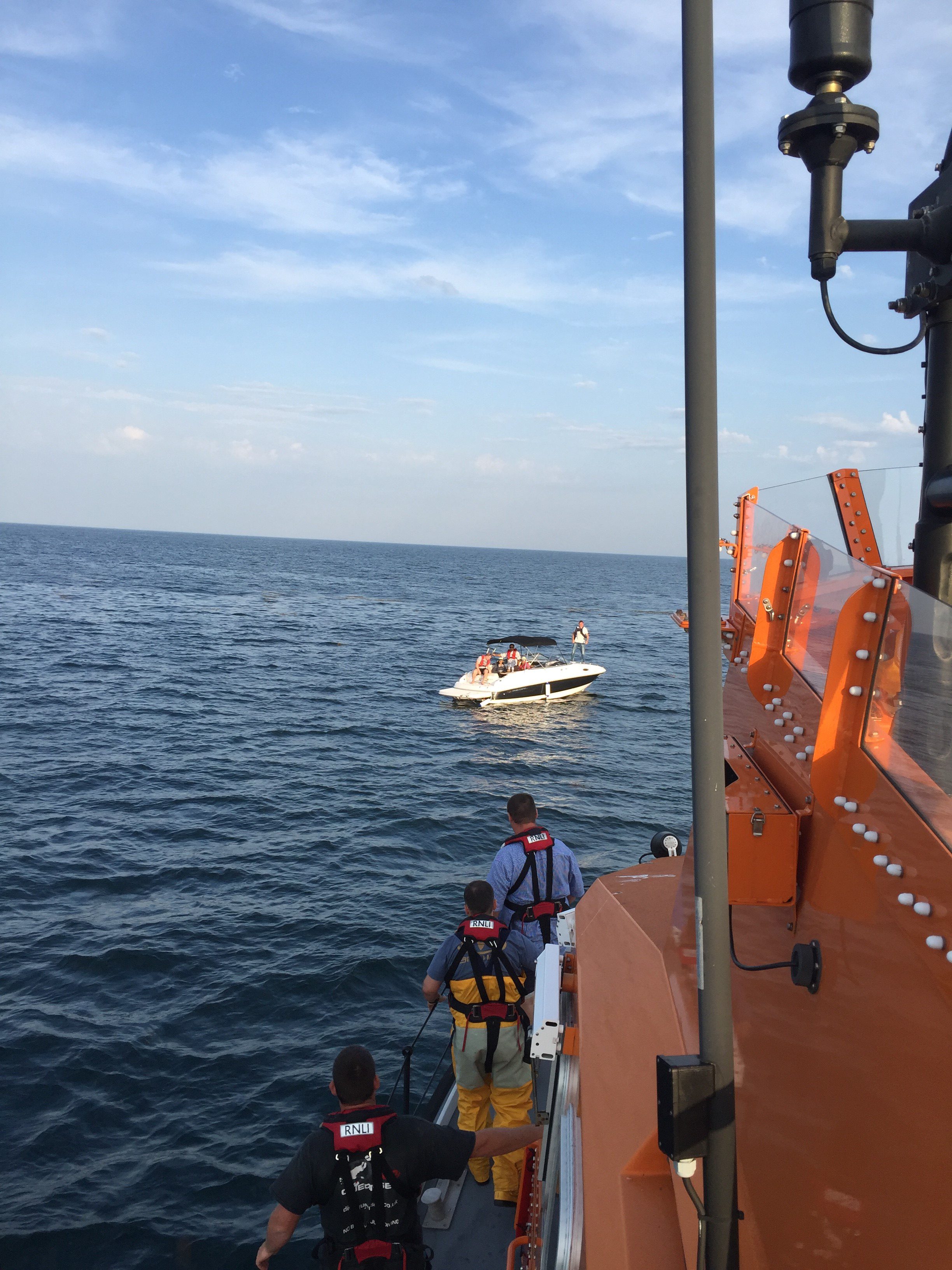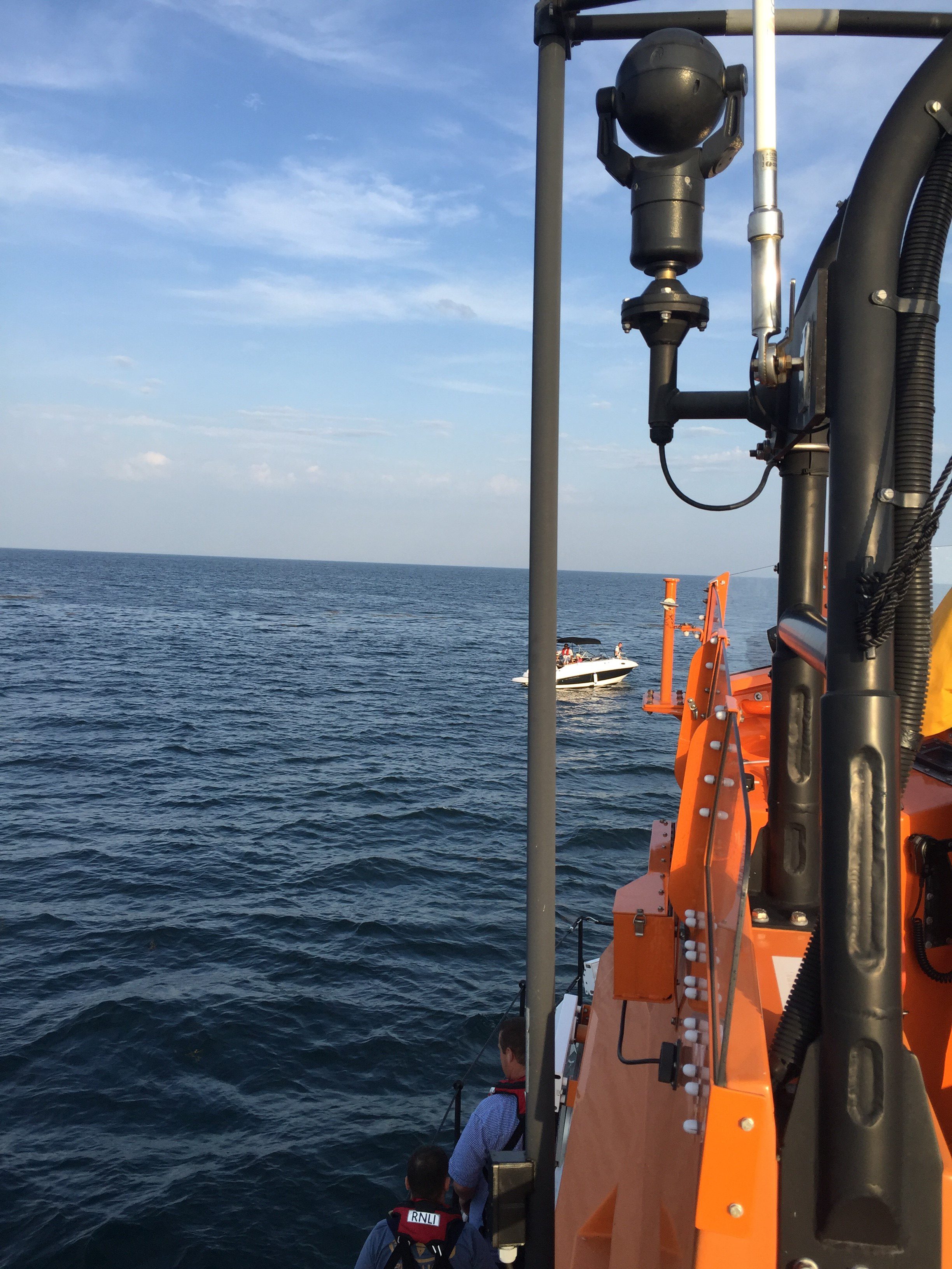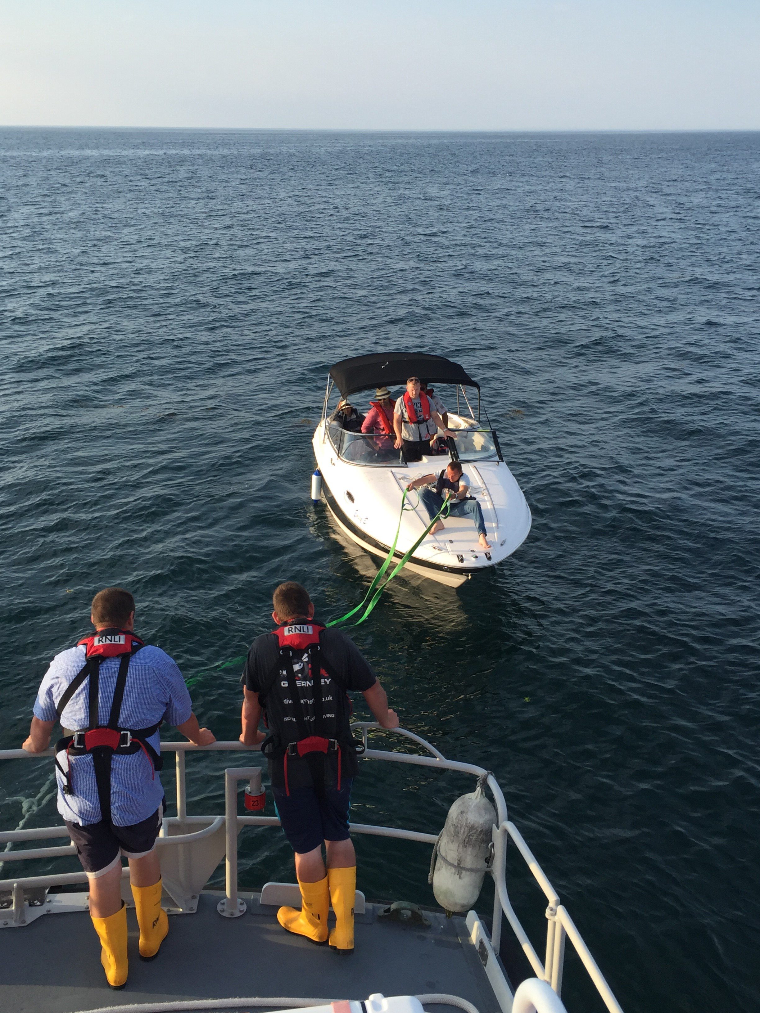 The St Peter Port Lifeboat was called out on the evening of Saturday 27th August 2016 to go to the aid of a 26 foot Jersey registered motor cruiser, which had suffered engine failure. The Emily B with 5 people on board, was approximately 3.5 miles South East of Sark, when they put out a call for assistance.