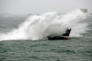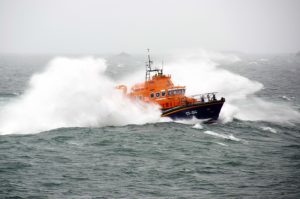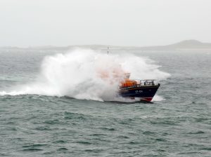 The St Peter Port Lifeboat was launched at 11:10 on Sunday 29th July 2018 after reports were received of 2 people in an inflatable kayak, at the entrance to Pembroke bay, were in difficulties and unable to make their way back against the strong Southerly winds. Fortunately, the Kayakers were able to make their way back, and the lifeboat was stood down before arriving on scene.