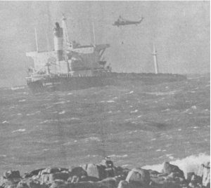 The ‘Point Law’, a Shell-Mex and BP coastal tanker ran aground at full speed on the south-west of Alderney on 15th July 1975. St.Peter Port lifeboat saved 6 and a French helicopter the remaining 6 crew. This RNLI Bronze medal service became much used to advertise rescue methods. The Master of ‘Point Law’ lost his Certificate of Competency, was demoted and was found dead in his bunk six weeks later.