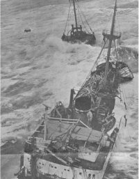 French Trawler ‘B3035’ in difficulties at Havre Gosselin, Sark. Lifeboat and ‘New Fawn’ with Harbourmaster Capt Franklin on board, attend. It was later revealed that she was a French ‘submarine chaser’ with 43 crew, 6 guns and depth charges!